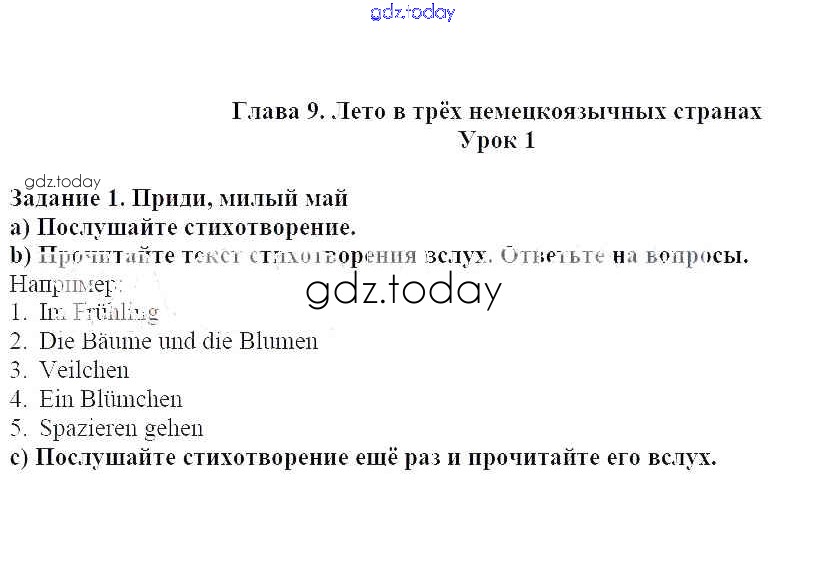 На страницах сайта gdz.today вы найдете учебный и вспомогательный материал, направленный на улучшения знаний школьной программы. ГДЗ - онлайн мир знаний Уроки 1-12 Решение к главе 9. Лето в трёх немецкоязычных странах 1 Учебнику по Немецкому языку для 5 класса Яковлева Углубленный уровень Просвещение Wunderkinder Plus 2020