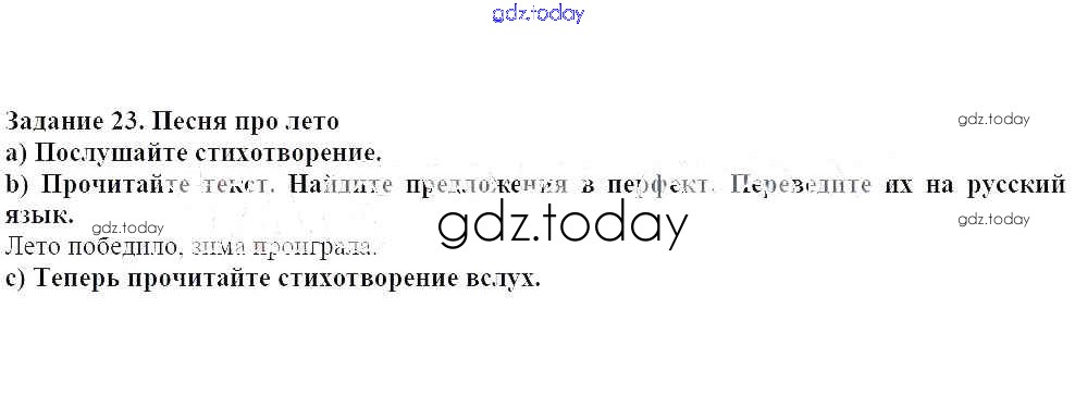 На страницах сайта gdz.today вы найдете учебный и вспомогательный материал, направленный на улучшения знаний школьной программы. ГДЗ - онлайн мир знаний Уроки 1-12 Решение к главе 9. Лето в трёх немецкоязычных странах 23 Учебнику по Немецкому языку для 5 класса Яковлева Углубленный уровень Просвещение Wunderkinder Plus 2020
