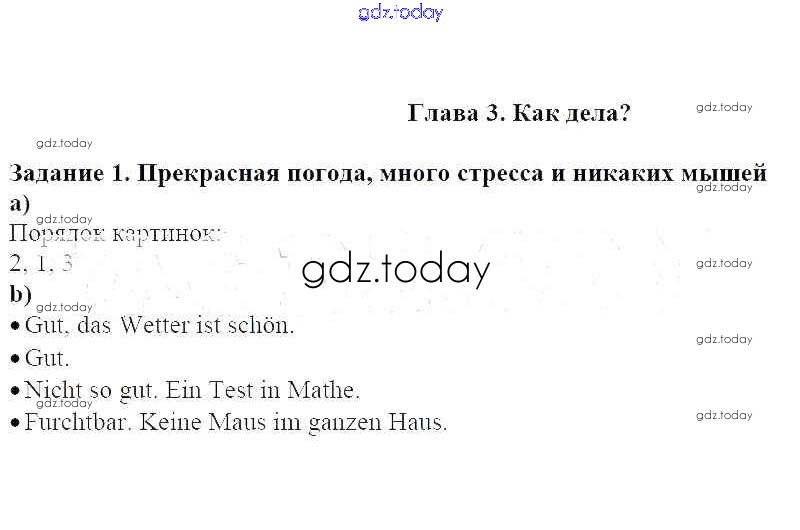 На страницах сайта gdz.today вы найдете учебный и вспомогательный материал, направленный на улучшения знаний школьной программы. ГДЗ - онлайн мир знаний Решение к главе 3. Как дела 1 Учебнику по Немецкому языку для 5 класса Яцковская Просвещение Wunderkinder 2017