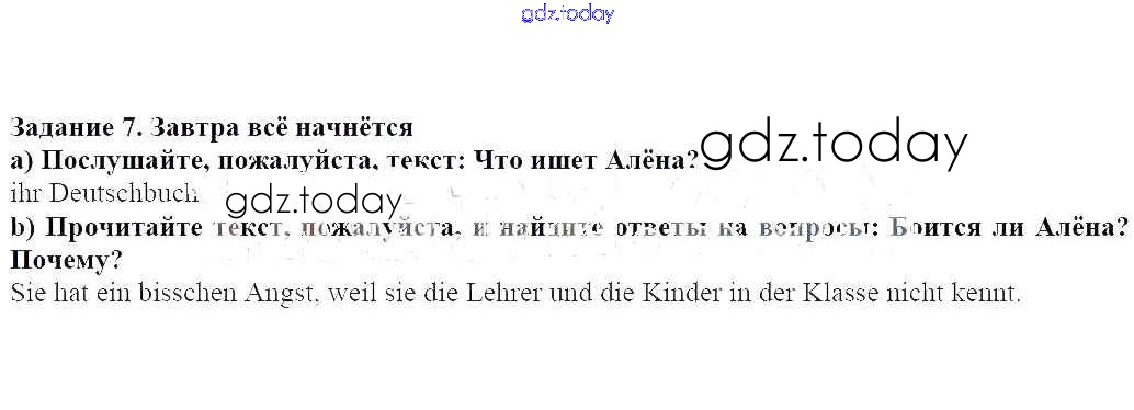 На страницах сайта gdz.today вы найдете учебный и вспомогательный материал, направленный на улучшения знаний школьной программы. ГДЗ - онлайн мир знаний Решение к главе 7. Завтра всё начинается 7 Учебнику по Немецкому языку для 5 класса Яцковская Просвещение Wunderkinder 2017