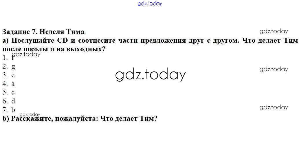 На страницах сайта gdz.today вы найдете учебный и вспомогательный материал, направленный на улучшения знаний школьной программы. ГДЗ - онлайн мир знаний Решение к главе 8. Одна неделя – семь дней 7 Учебнику по Немецкому языку для 5 класса Яцковская Просвещение Wunderkinder 2017