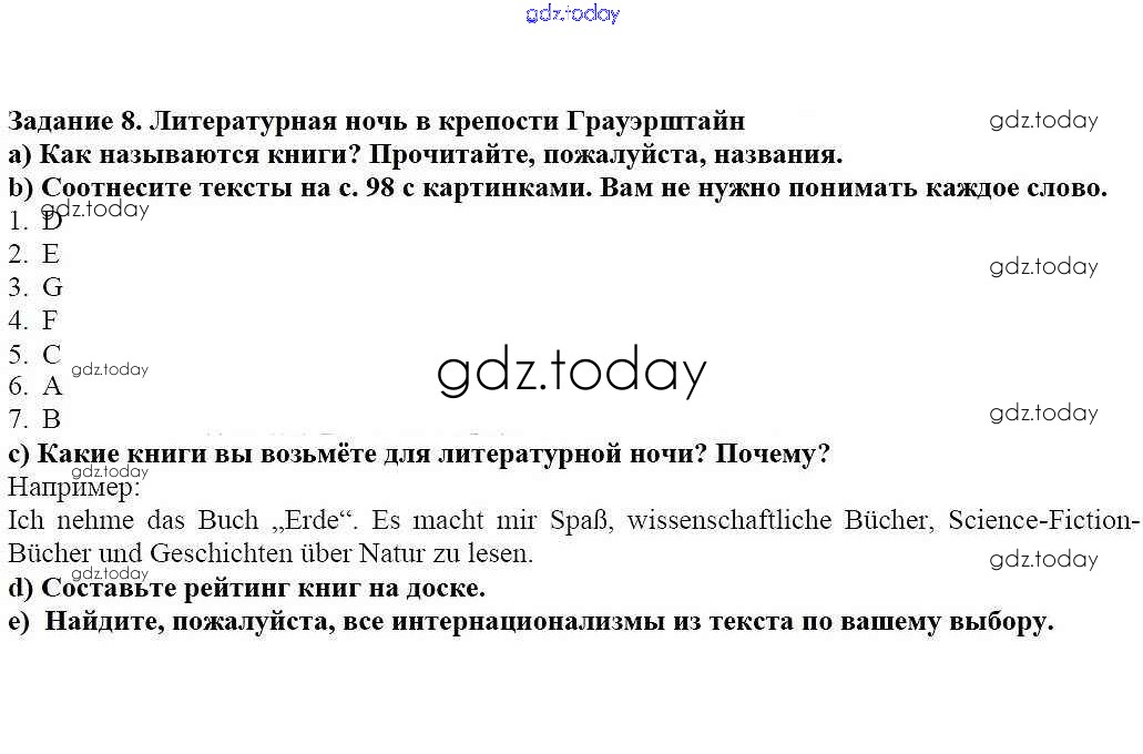 На страницах сайта gdz.today вы найдете учебный и вспомогательный материал, направленный на улучшения знаний школьной программы. ГДЗ - онлайн мир знаний Решение к главе 11. Зима, погода, веселье 8 Учебнику по Немецкому языку для 5 класса Яцковская Просвещение Wunderkinder 2017