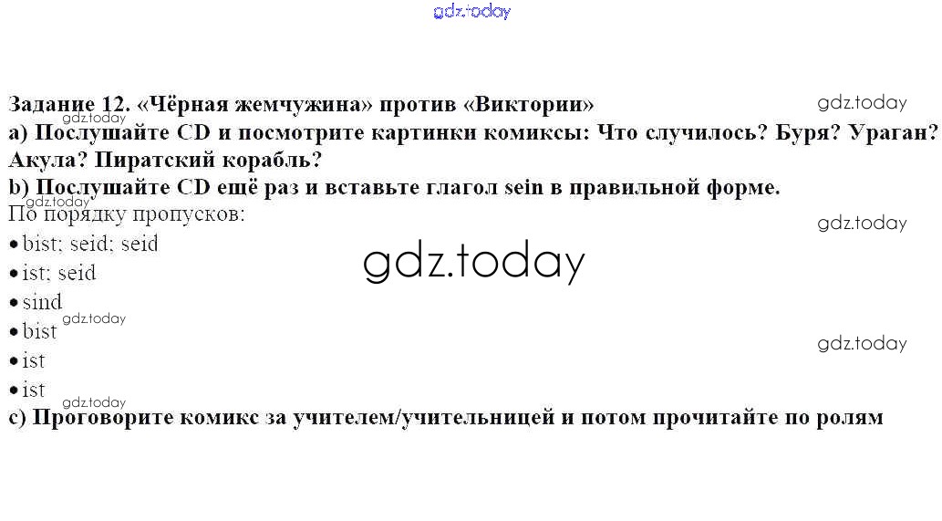 На страницах сайта gdz.today вы найдете учебный и вспомогательный материал, направленный на улучшения знаний школьной программы. ГДЗ - онлайн мир знаний Решение к главе 12. Числа, бабочка, пираты 12 Учебнику по Немецкому языку для 5 класса Яцковская Просвещение Wunderkinder 2017