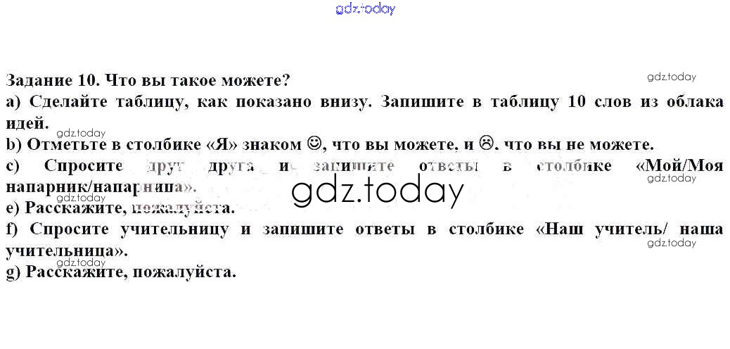На страницах сайта gdz.today вы найдете учебный и вспомогательный материал, направленный на улучшения знаний школьной программы. ГДЗ - онлайн мир знаний Решение к главе 13. Вундеркинды кое-что умеют! 10 Учебнику по Немецкому языку для 5 класса Яцковская Просвещение Wunderkinder 2017