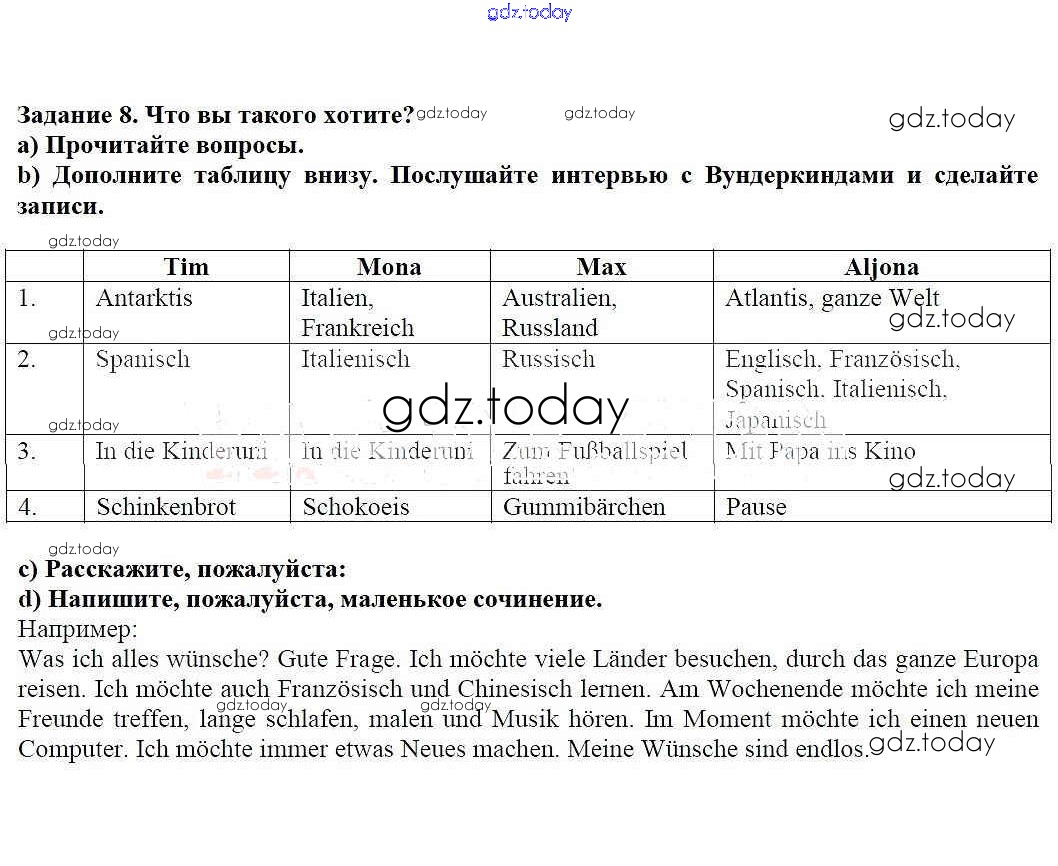 На страницах сайта gdz.today вы найдете учебный и вспомогательный материал, направленный на улучшения знаний школьной программы. ГДЗ - онлайн мир знаний Решение к главе 14. Вкусно! 8 Учебнику по Немецкому языку для 5 класса Яцковская Просвещение Wunderkinder 2017