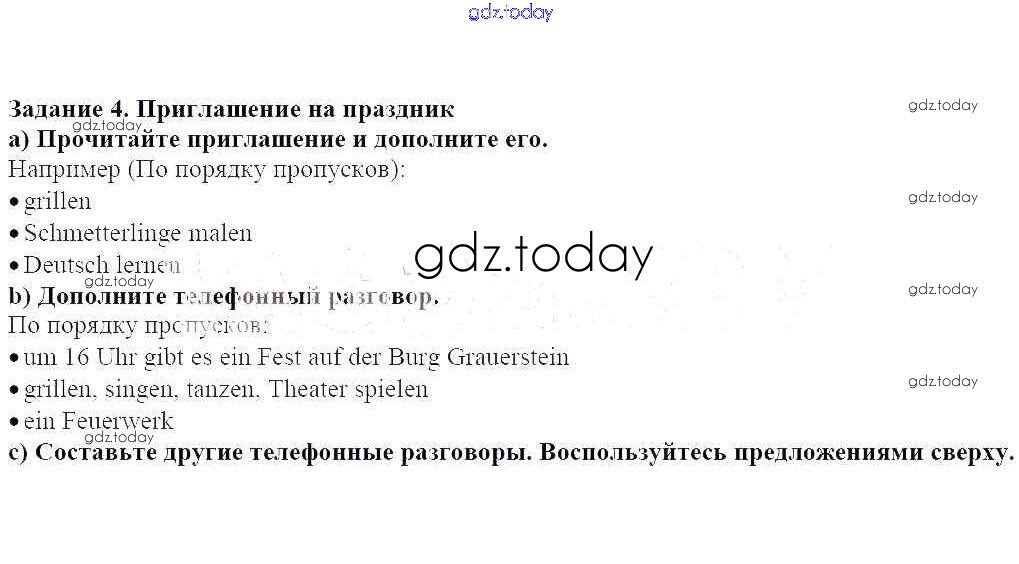 На страницах сайта gdz.today вы найдете учебный и вспомогательный материал, направленный на улучшения знаний школьной программы. ГДЗ - онлайн мир знаний Решение к главе 15. Встреча в крепости 4 Учебнику по Немецкому языку для 5 класса Яцковская Просвещение Wunderkinder 2017