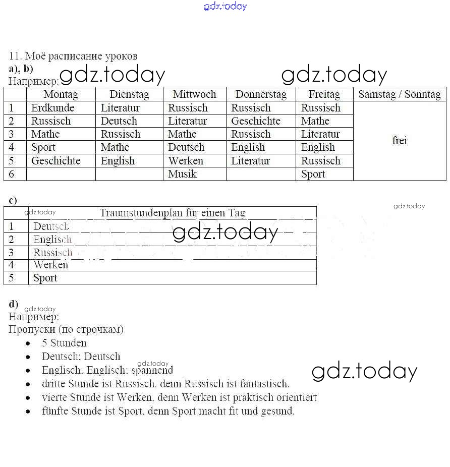 На страницах сайта gdz.today вы найдете учебный и вспомогательный материал, направленный на улучшения знаний школьной программы. ГДЗ - онлайн мир знаний Глава 7 Решение к части 2 11 Рабочей тетради по Немецкому языку для 5 класса Яцковская Просвещение Wunderkinder 2019