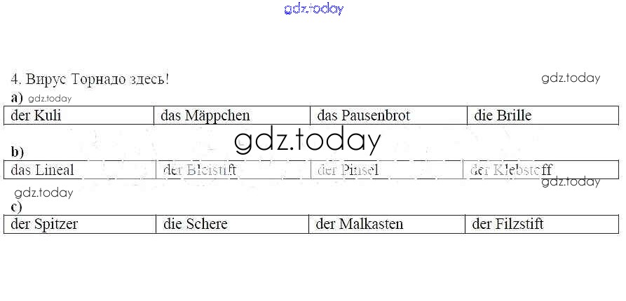На страницах сайта gdz.today вы найдете учебный и вспомогательный материал, направленный на улучшения знаний школьной программы. ГДЗ - онлайн мир знаний Глава 7 Решение к части 2 4 Рабочей тетради по Немецкому языку для 5 класса Яцковская Просвещение Wunderkinder 2019