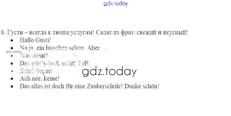 На страницах сайта gdz.today вы найдете учебный и вспомогательный материал, направленный на улучшения знаний школьной программы. ГДЗ - онлайн мир знаний Глава 7 Решение к части 2 8 Рабочей тетради по Немецкому языку для 5 класса Яцковская Просвещение Wunderkinder 2019