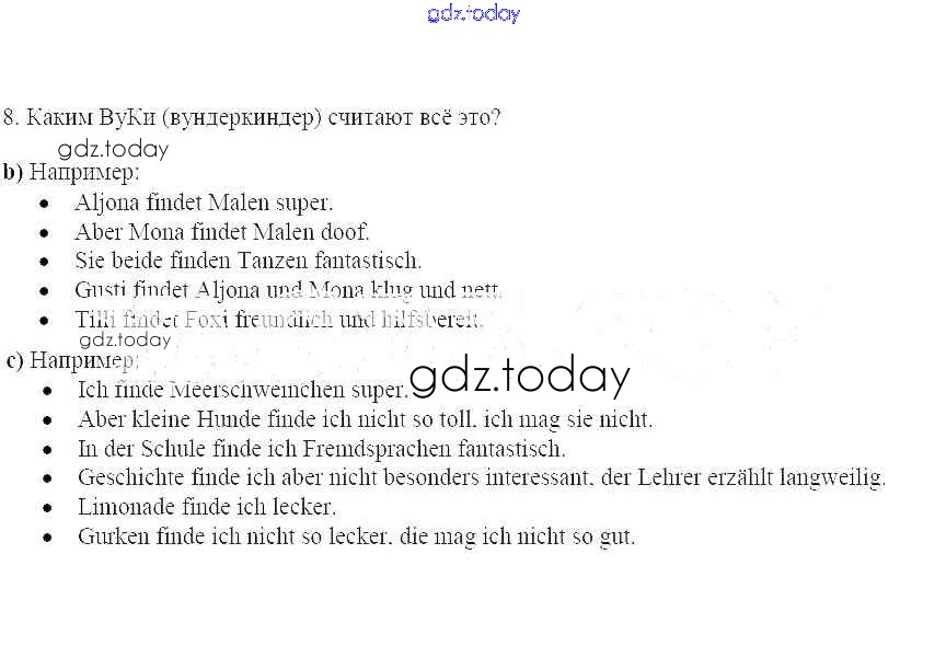 На страницах сайта gdz.today вы найдете учебный и вспомогательный материал, направленный на улучшения знаний школьной программы. ГДЗ - онлайн мир знаний Глава 8 Решение к части 2 8 Рабочей тетради по Немецкому языку для 5 класса Яцковская  Просвещение Wunderkinder 2019