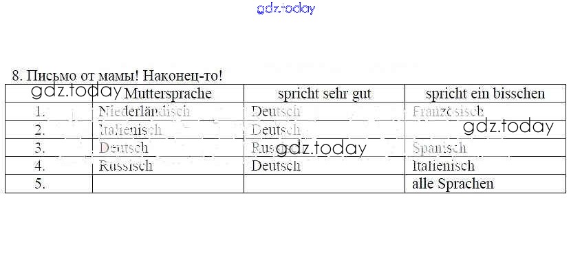 На страницах сайта gdz.today вы найдете учебный и вспомогательный материал, направленный на улучшения знаний школьной программы. ГДЗ - онлайн мир знаний Глава 10 Решение к части 3 8 Рабочей тетради по Немецкому языку для 5 класса Яцковская Просвещение Wunderkinder 2019
