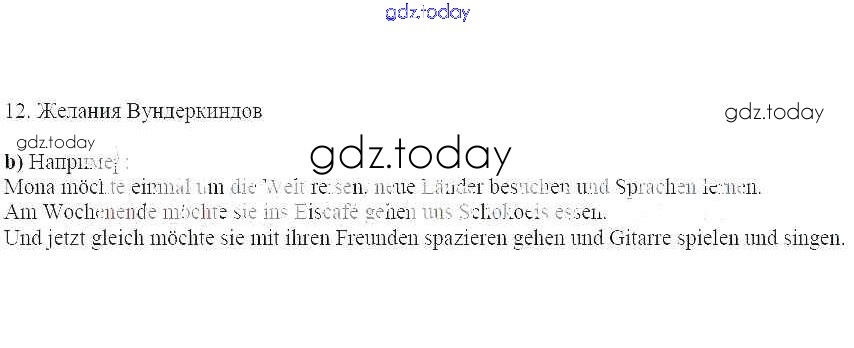На страницах сайта gdz.today вы найдете учебный и вспомогательный материал, направленный на улучшения знаний школьной программы. ГДЗ - онлайн мир знаний Глава 14 Решение к части 4 12 Рабочей тетради по Немецкому языку для 5 класса Яцковская Просвещение Wunderkinder 2019