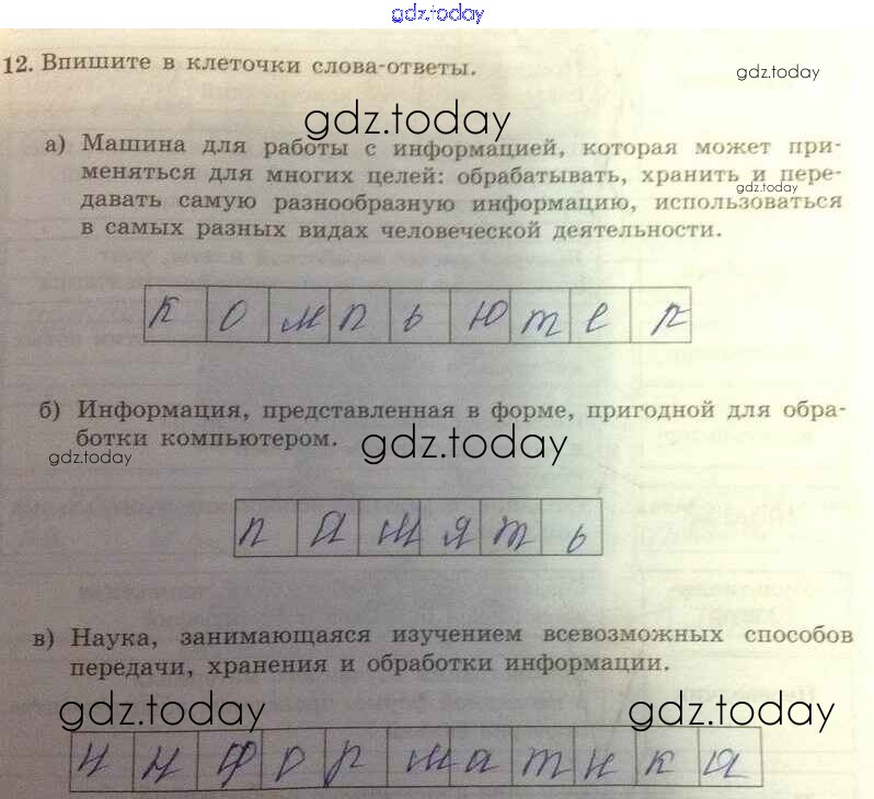 На страницах сайта gdz.today вы найдете учебный и вспомогательный материал, направленный на улучшения знаний школьной программы. ГДЗ - онлайн мир знаний Решение к заданиям 12 Рабочей тетради по Информатике для 5 класса Босова Бином 2016
