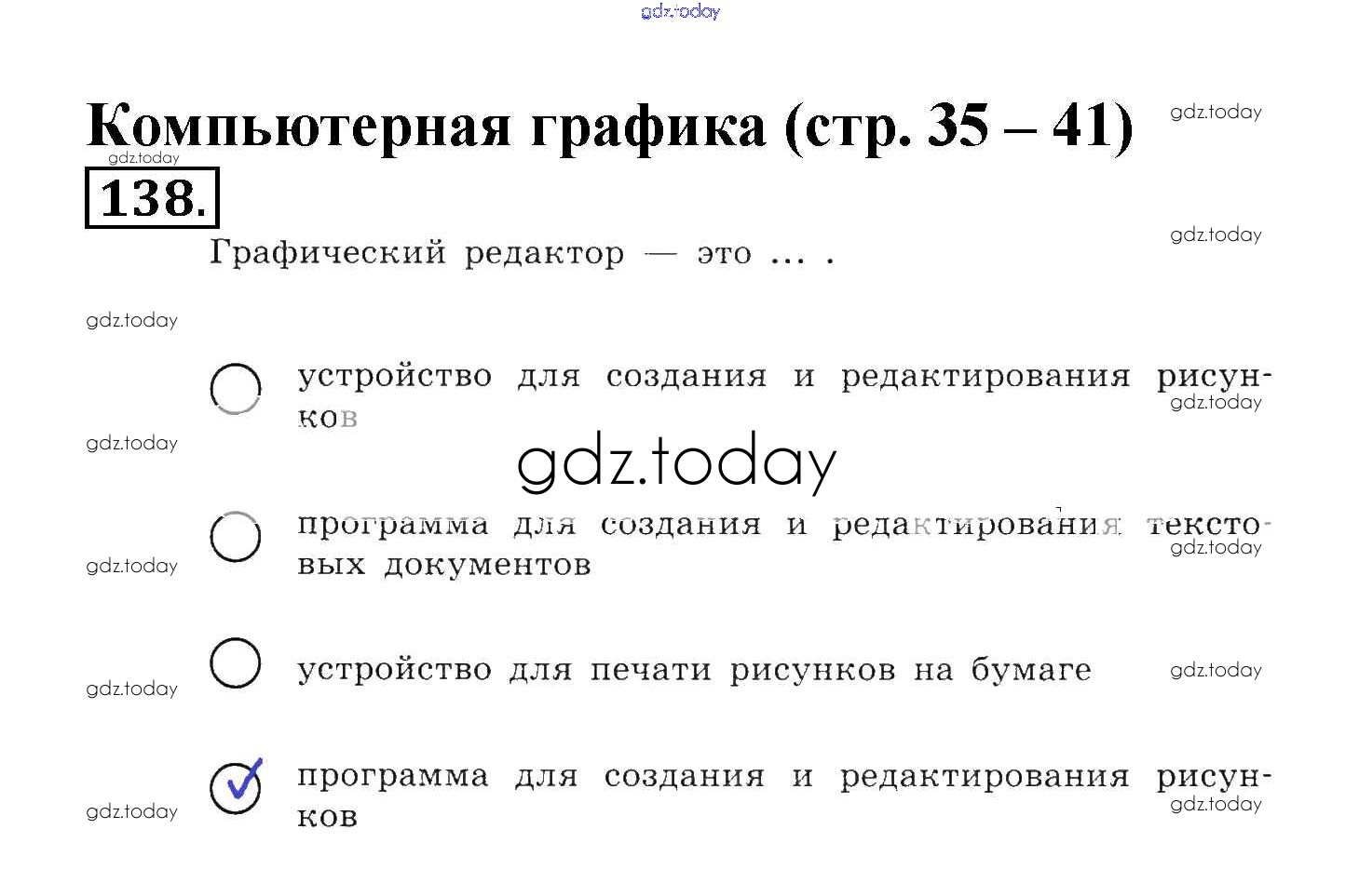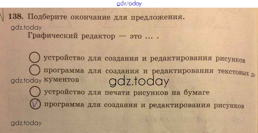 На страницах сайта gdz.today вы найдете учебный и вспомогательный материал, направленный на улучшения знаний школьной программы. ГДЗ - онлайн мир знаний Решение к заданиям 138 Рабочей тетради по Информатике для 5 класса Босова Бином 2016
