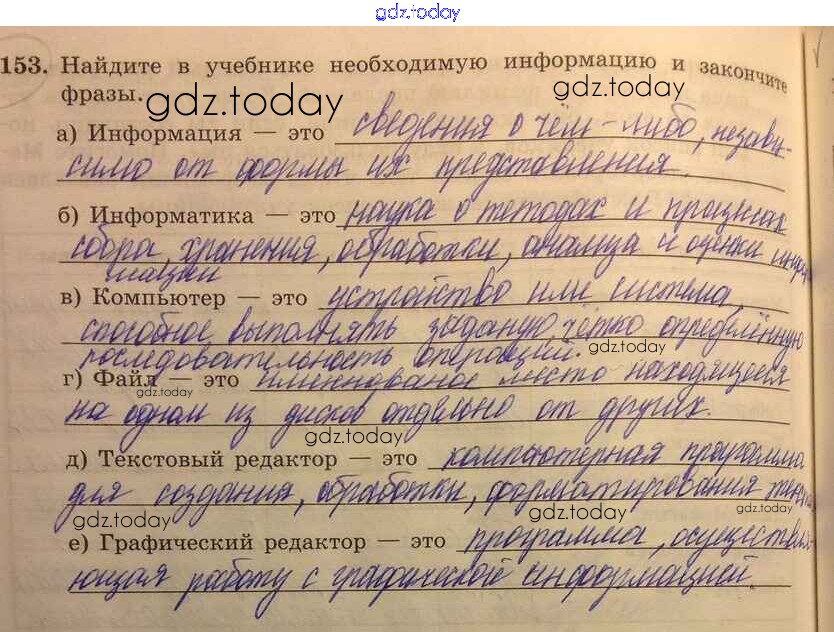 На страницах сайта gdz.today вы найдете учебный и вспомогательный материал, направленный на улучшения знаний школьной программы. ГДЗ - онлайн мир знаний Решение к заданиям 153 Рабочей тетради по Информатике для 5 класса Босова Бином 2016