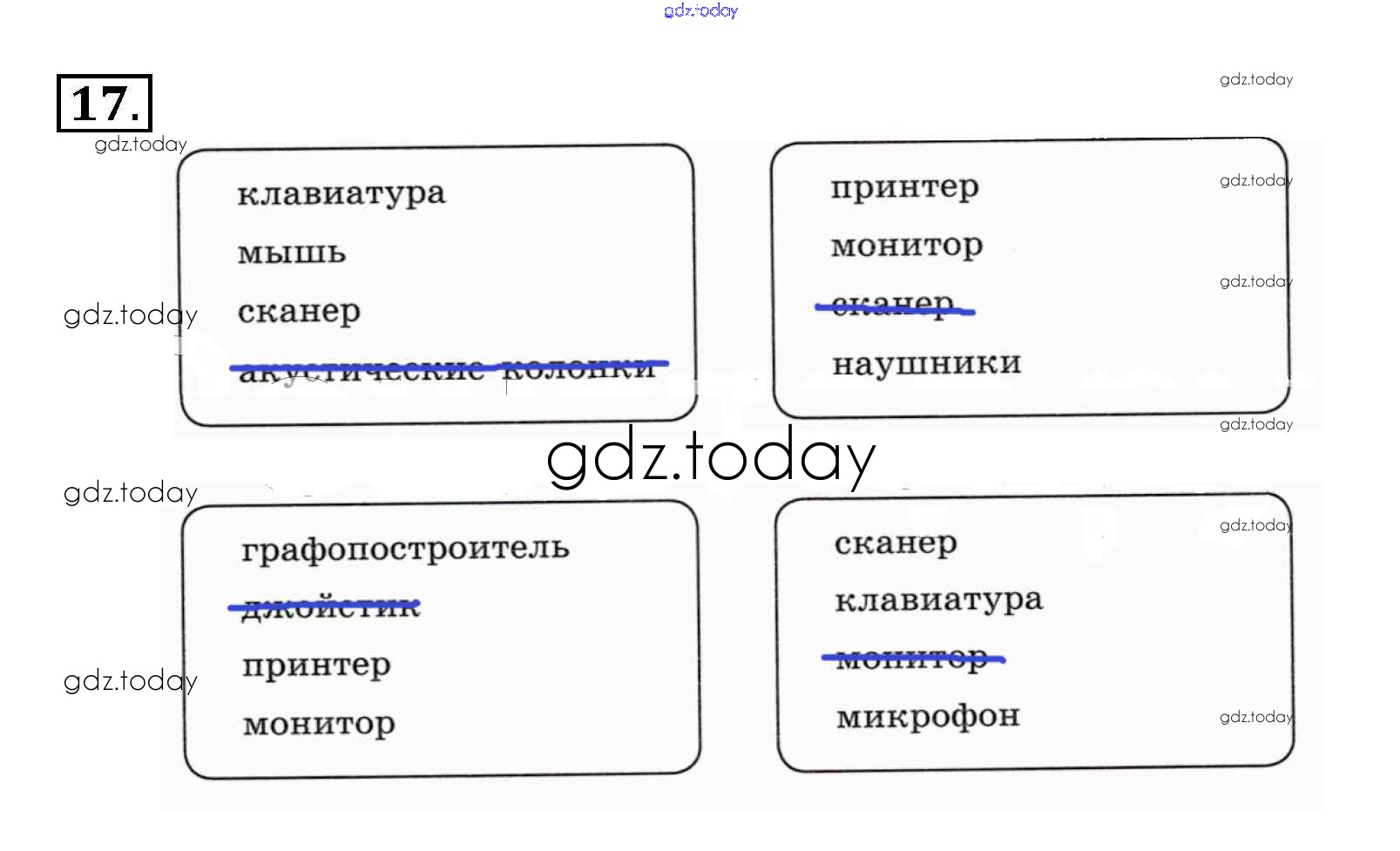 На страницах сайта gdz.today вы найдете учебный и вспомогательный материал, направленный на улучшения знаний школьной программы. ГДЗ - онлайн мир знаний Решение к заданиям 17 Рабочей тетради по Информатике для 5 класса Босова Бином 2016