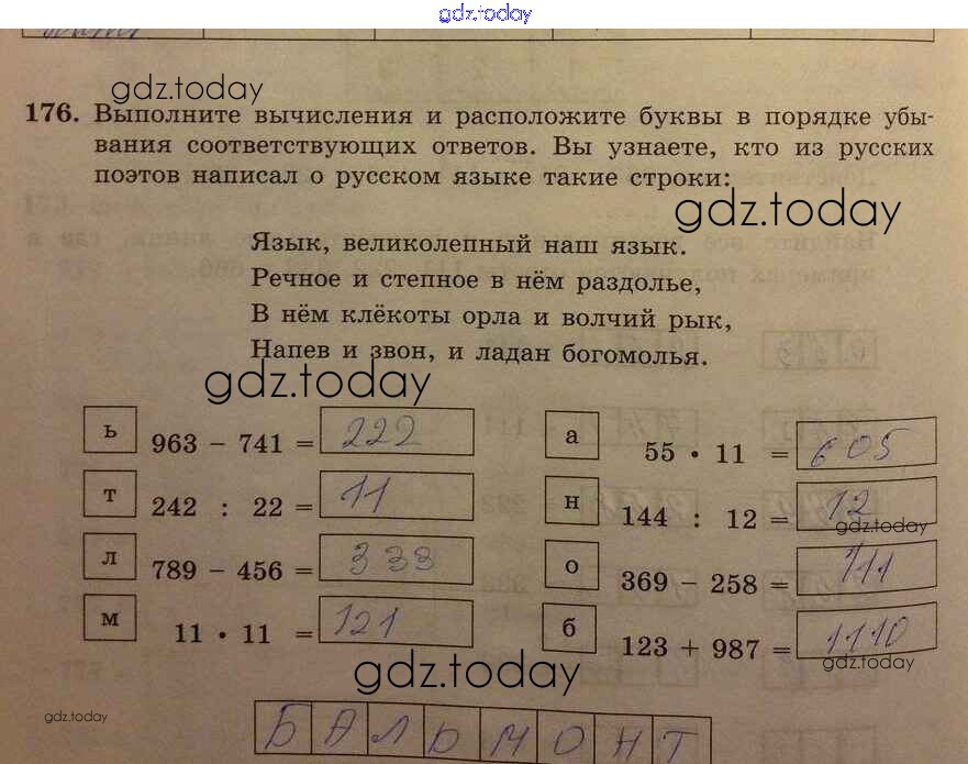Ответы к Решение к заданиям 176 Рабочей тетради по Информатике для 5 класса Босова Бином 2016
