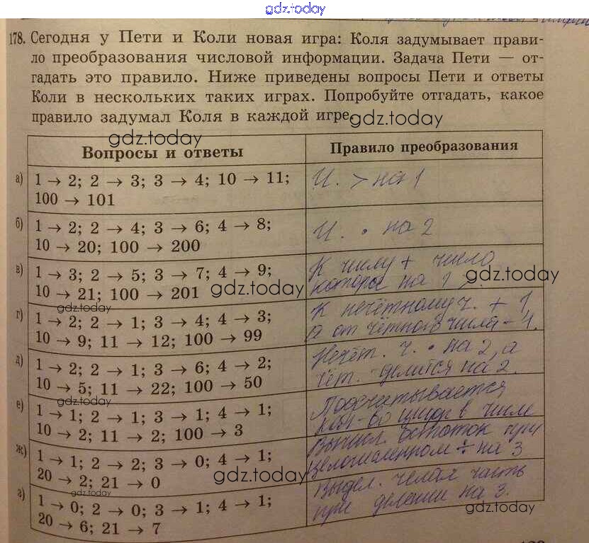 Ответы к Решение к заданиям 178 Рабочей тетради по Информатике для 5 класса Босова Бином 2016