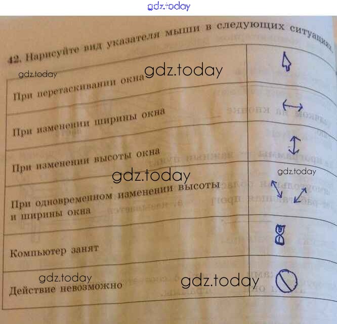 На страницах сайта gdz.today вы найдете учебный и вспомогательный материал, направленный на улучшения знаний школьной программы. ГДЗ - онлайн мир знаний Решение к заданиям 42 Рабочей тетради по Информатике для 5 класса Босова Бином 2016
