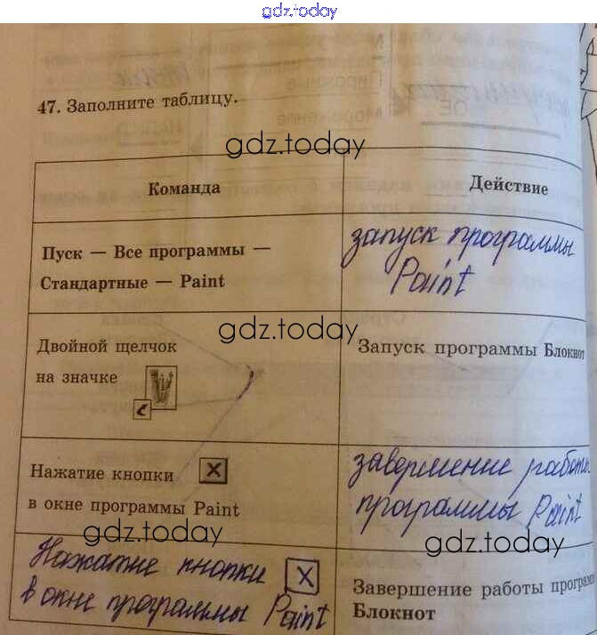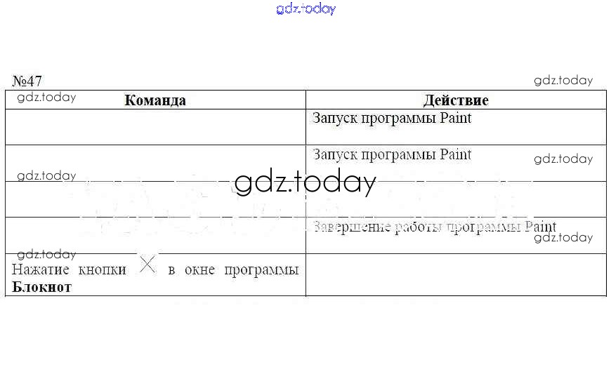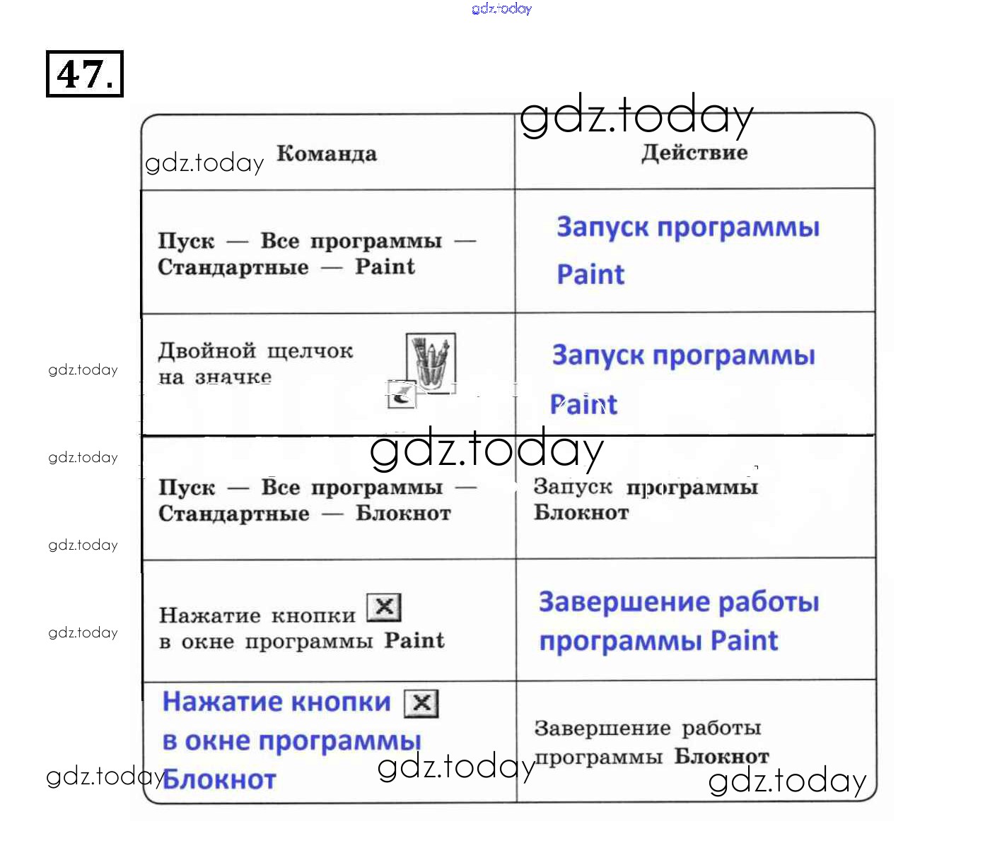 На страницах сайта gdz.today вы найдете учебный и вспомогательный материал, направленный на улучшения знаний школьной программы. ГДЗ - онлайн мир знаний Решение к заданиям 47 Рабочей тетради по Информатике для 5 класса Босова Бином 2016