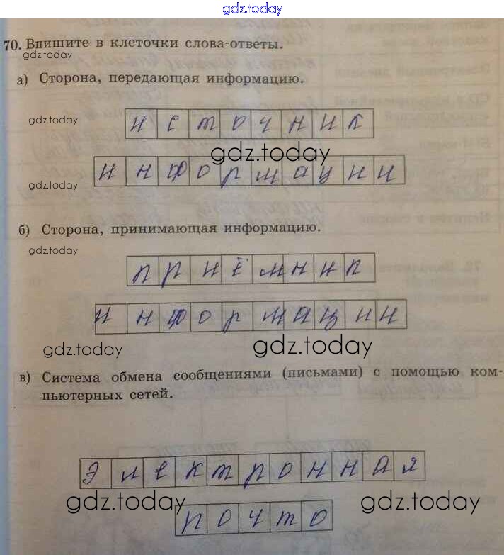 На страницах сайта gdz.today вы найдете учебный и вспомогательный материал, направленный на улучшения знаний школьной программы. ГДЗ - онлайн мир знаний Решение к заданиям 70 Рабочей тетради по Информатике для 5 класса Босова Бином 2016