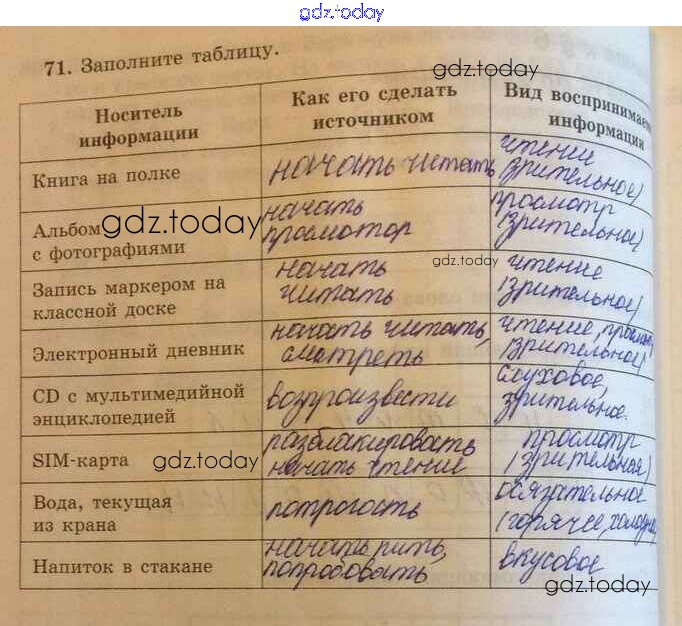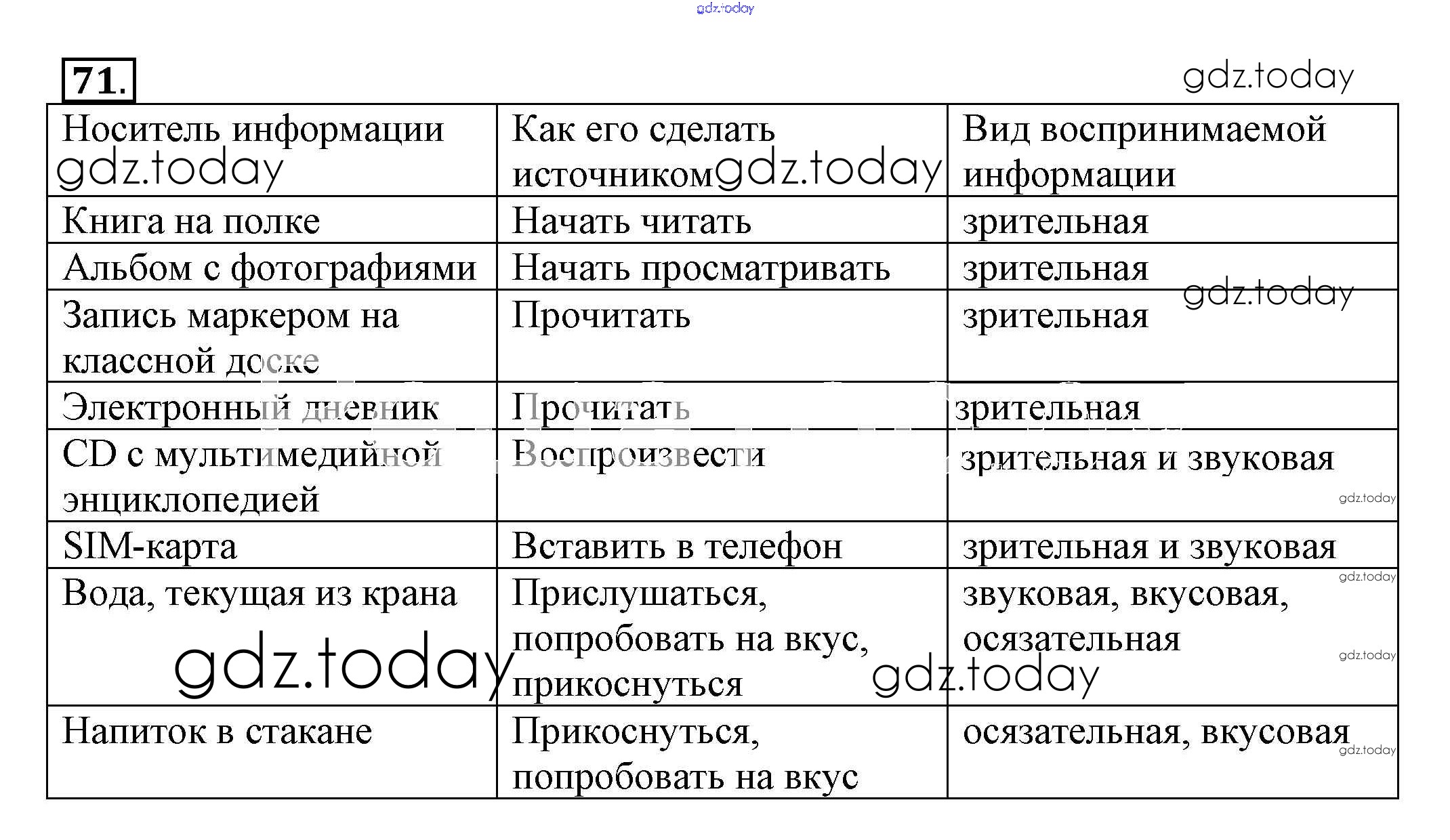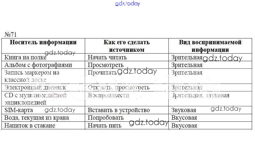 На страницах сайта gdz.today вы найдете учебный и вспомогательный материал, направленный на улучшения знаний школьной программы. ГДЗ - онлайн мир знаний Решение к заданиям 71 Рабочей тетради по Информатике для 5 класса Босова Бином 2016