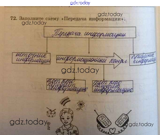 На страницах сайта gdz.today вы найдете учебный и вспомогательный материал, направленный на улучшения знаний школьной программы. ГДЗ - онлайн мир знаний Решение к заданиям 72 Рабочей тетради по Информатике для 5 класса Босова Бином 2016