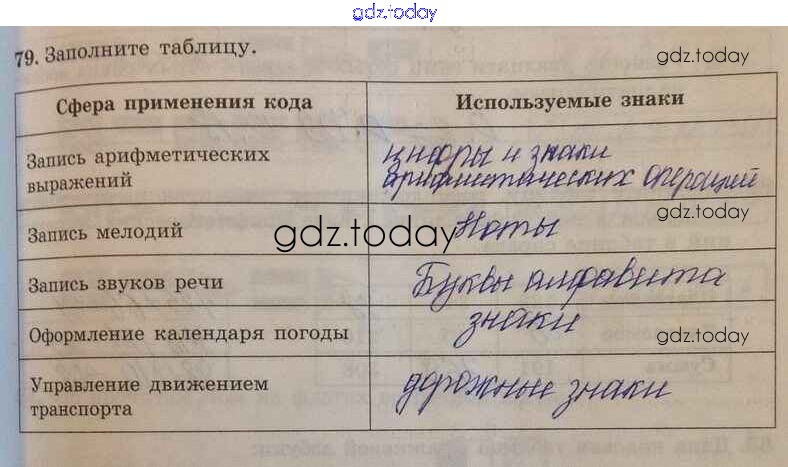 На страницах сайта gdz.today вы найдете учебный и вспомогательный материал, направленный на улучшения знаний школьной программы. ГДЗ - онлайн мир знаний Решение к заданиям 79 Рабочей тетради по Информатике для 5 класса Босова Бином 2016