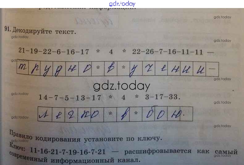 На страницах сайта gdz.today вы найдете учебный и вспомогательный материал, направленный на улучшения знаний школьной программы. ГДЗ - онлайн мир знаний Решение к заданиям 91 Рабочей тетради по Информатике для 5 класса Босова Бином 2016