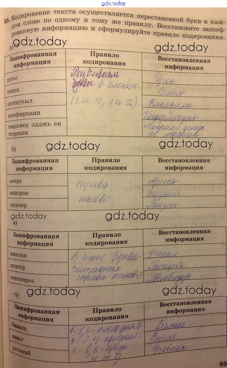 На страницах сайта gdz.today вы найдете учебный и вспомогательный материал, направленный на улучшения знаний школьной программы. ГДЗ - онлайн мир знаний Решение к заданиям 95 Рабочей тетради по Информатике для 5 класса Босова Бином 2016