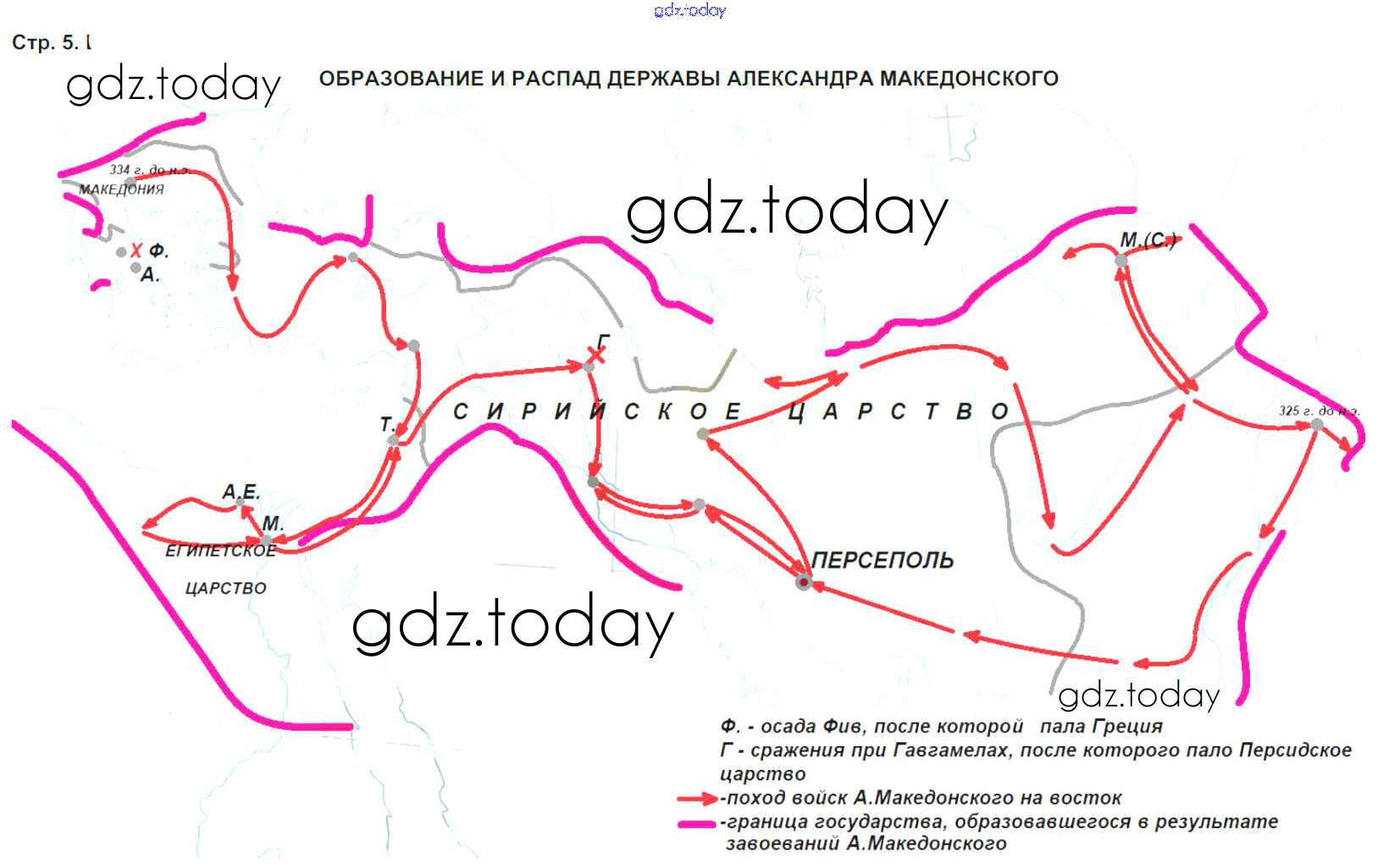 На страницах сайта gdz.today вы найдете учебный и вспомогательный материал, направленный на улучшения знаний школьной программы. ГДЗ - онлайн мир знаний Страницы (решение)  стр.5. Образование и распад державы Александра Македонского Атласу по Истории для 5 класса Стоялова  ФГУП Омская картографическая фабрика  2019