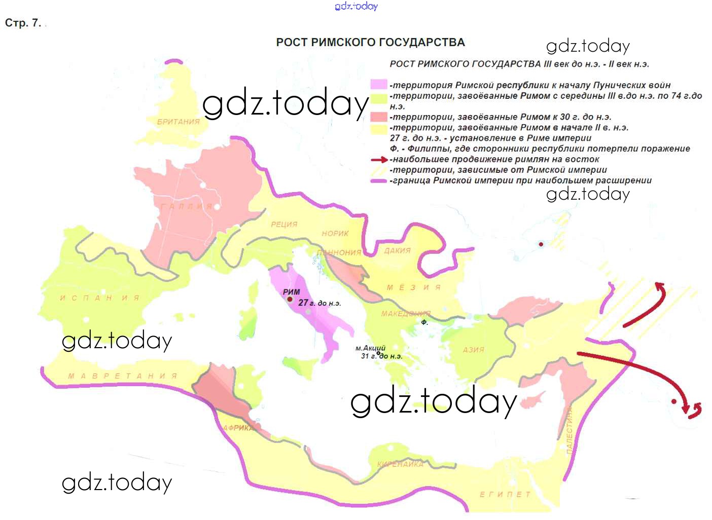 На страницах сайта gdz.today вы найдете учебный и вспомогательный материал, направленный на улучшения знаний школьной программы. ГДЗ - онлайн мир знаний Страницы (решение)  стр.7. Рост Римского государства Атласу по Истории для 5 класса Стоялова  ФГУП Омская картографическая фабрика  2019