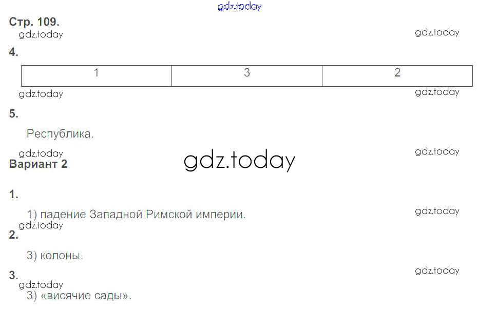 На страницах сайта gdz.today вы найдете учебный и вспомогательный материал, направленный на улучшения знаний школьной программы. ГДЗ - онлайн мир знаний Страницы (решение)  109 Рабочей тетради по Истории для 5 класса Чернова  Экзамен УМК 2019