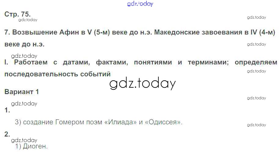 На страницах сайта gdz.today вы найдете учебный и вспомогательный материал, направленный на улучшения знаний школьной программы. ГДЗ - онлайн мир знаний Страницы (решение)  75 Рабочей тетради по Истории для 5 класса Чернова  Экзамен УМК 2019
