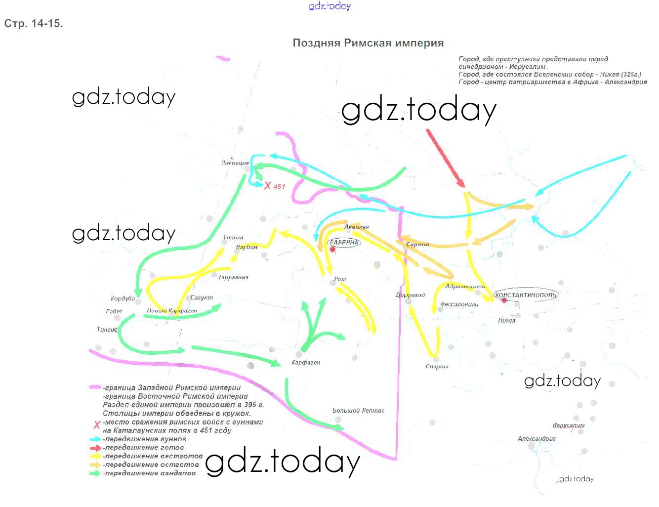 Ответы к Страницы (решение)  стр.14. Поздняя Римская империя Контурным картам по Истории для 5 класса Друбачевская, Уколова  Просвещение  2017