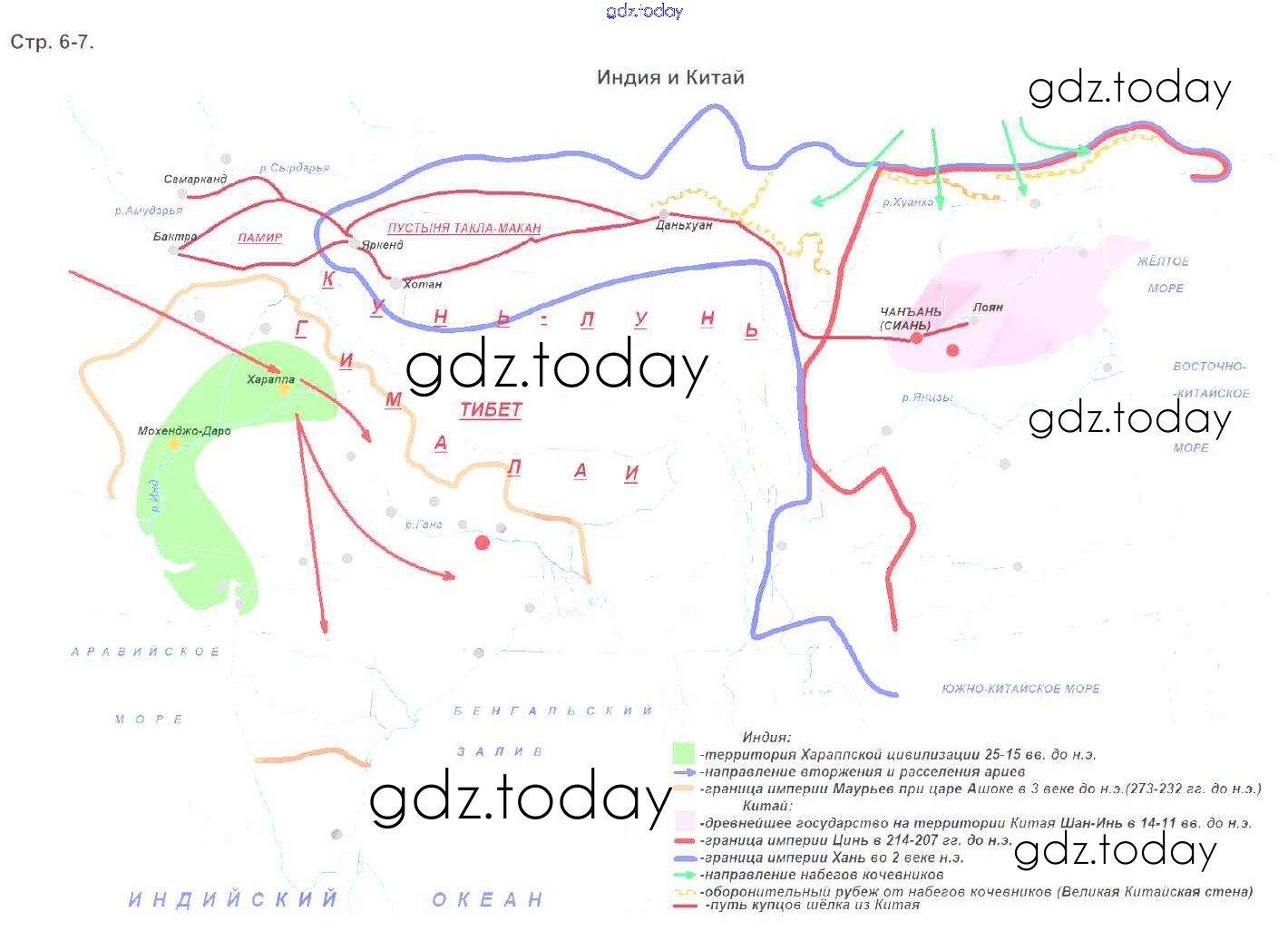 Ответы к Страницы (решение)  стр.6. Индия и Китай Контурным картам по Истории для 5 класса Друбачевская, Уколова  Просвещение  2017