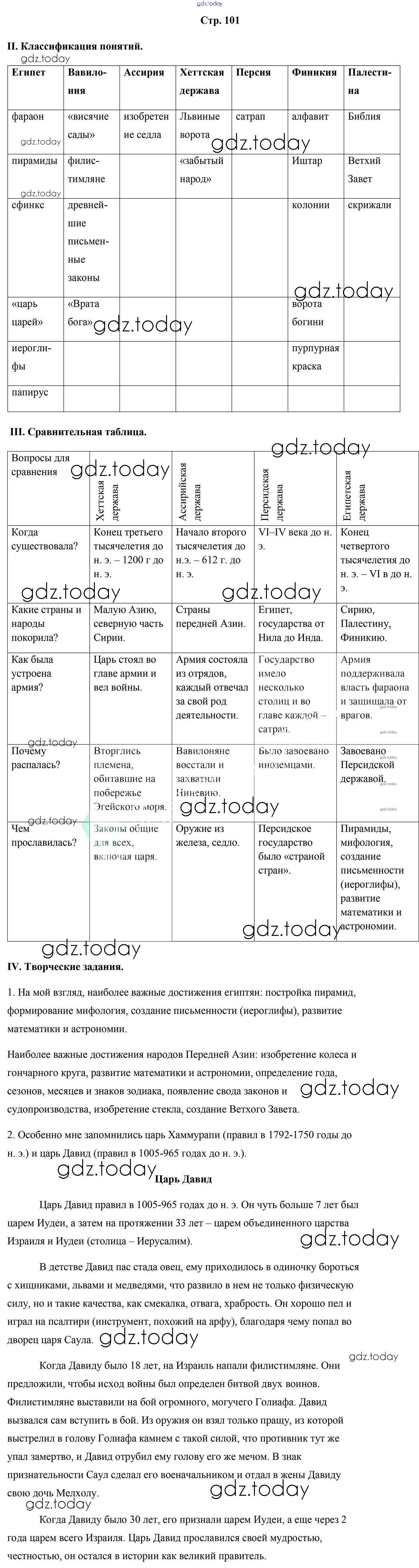 На страницах сайта gdz.today вы найдете учебный и вспомогательный материал, направленный на улучшения знаний школьной программы. ГДЗ - онлайн мир знаний Решение к части 1. Страницы  101 Учебнику по Истории для 5 класса Кошелев  Народная асвета  2014