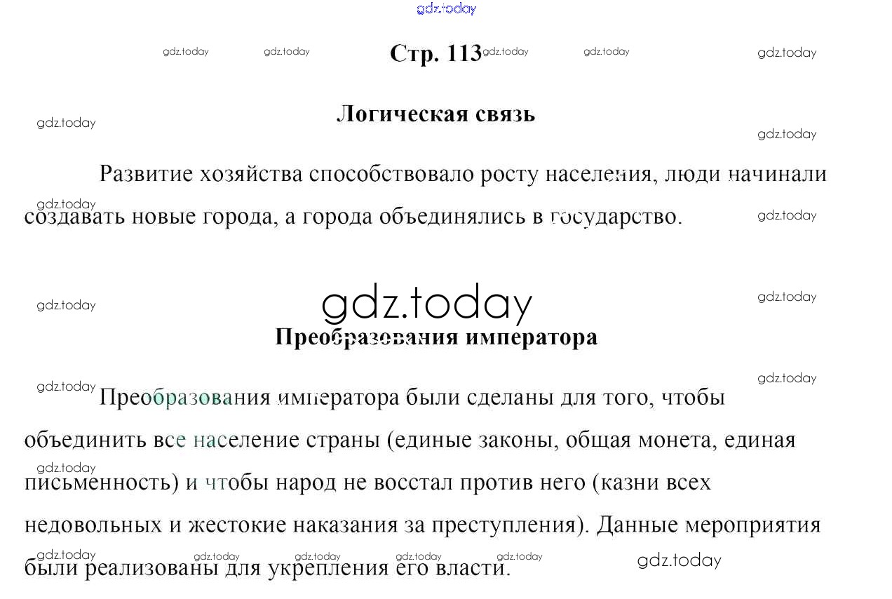 На страницах сайта gdz.today вы найдете учебный и вспомогательный материал, направленный на улучшения знаний школьной программы. ГДЗ - онлайн мир знаний Решение к части 1. Страницы  113 Учебнику по Истории для 5 класса Кошелев  Народная асвета  2014
