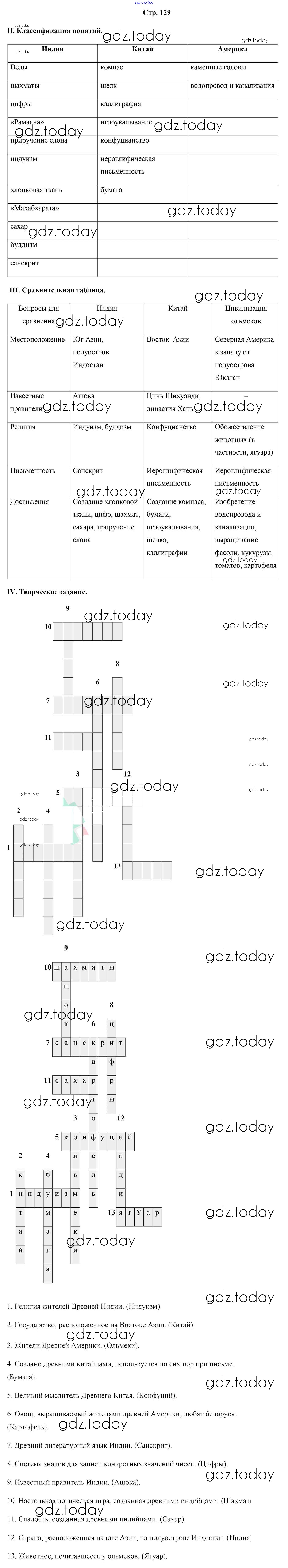 На страницах сайта gdz.today вы найдете учебный и вспомогательный материал, направленный на улучшения знаний школьной программы. ГДЗ - онлайн мир знаний Решение к части 1. Страницы  129 Учебнику по Истории для 5 класса Кошелев  Народная асвета  2014