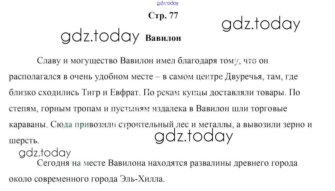 На страницах сайта gdz.today вы найдете учебный и вспомогательный материал, направленный на улучшения знаний школьной программы. ГДЗ - онлайн мир знаний Решение к части 1. Страницы  77 Учебнику по Истории для 5 класса Кошелев  Народная асвета  2014