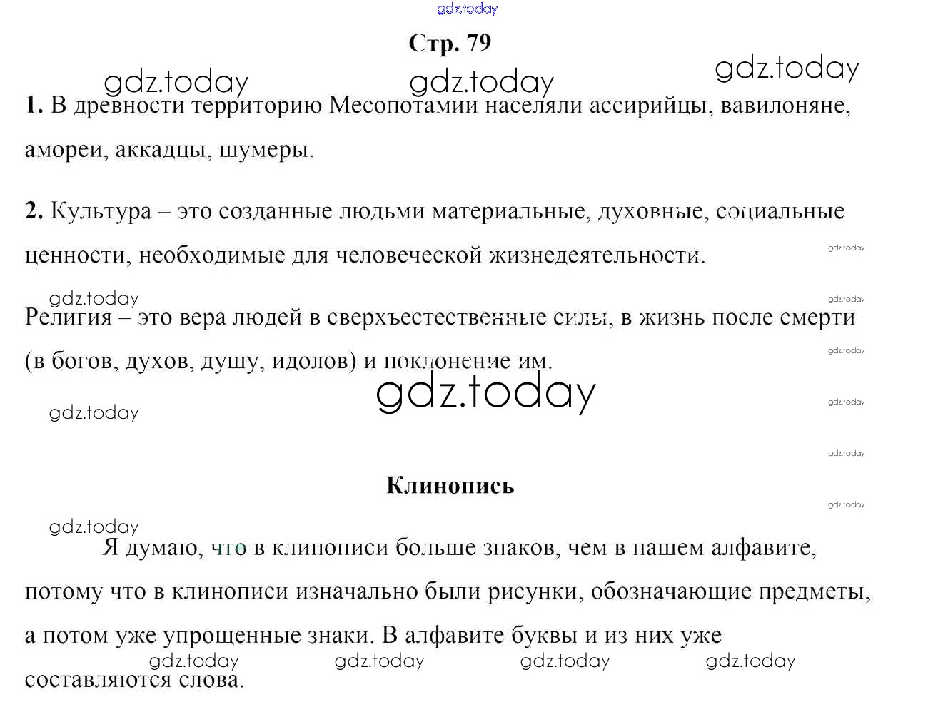 На страницах сайта gdz.today вы найдете учебный и вспомогательный материал, направленный на улучшения знаний школьной программы. ГДЗ - онлайн мир знаний Решение к части 1. Страницы  79 Учебнику по Истории для 5 класса Кошелев  Народная асвета  2014