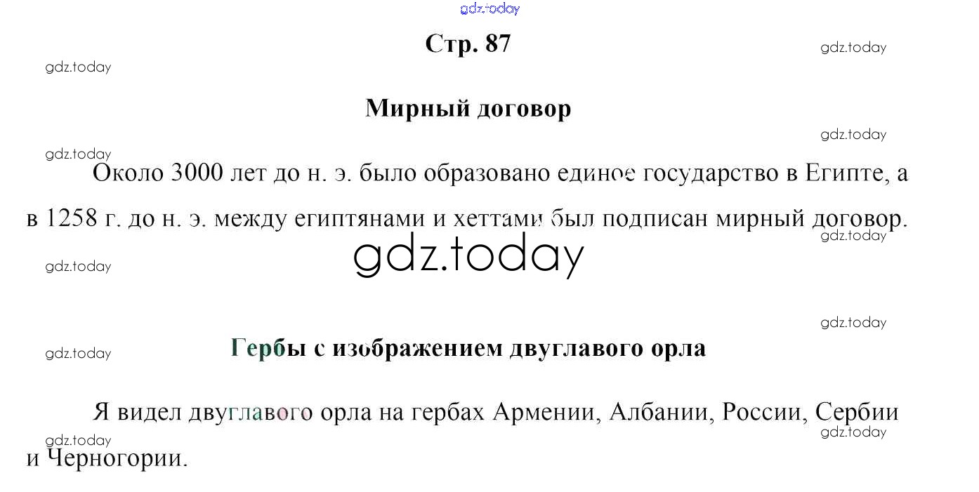 На страницах сайта gdz.today вы найдете учебный и вспомогательный материал, направленный на улучшения знаний школьной программы. ГДЗ - онлайн мир знаний Решение к части 1. Страницы  87 Учебнику по Истории для 5 класса Кошелев  Народная асвета  2014