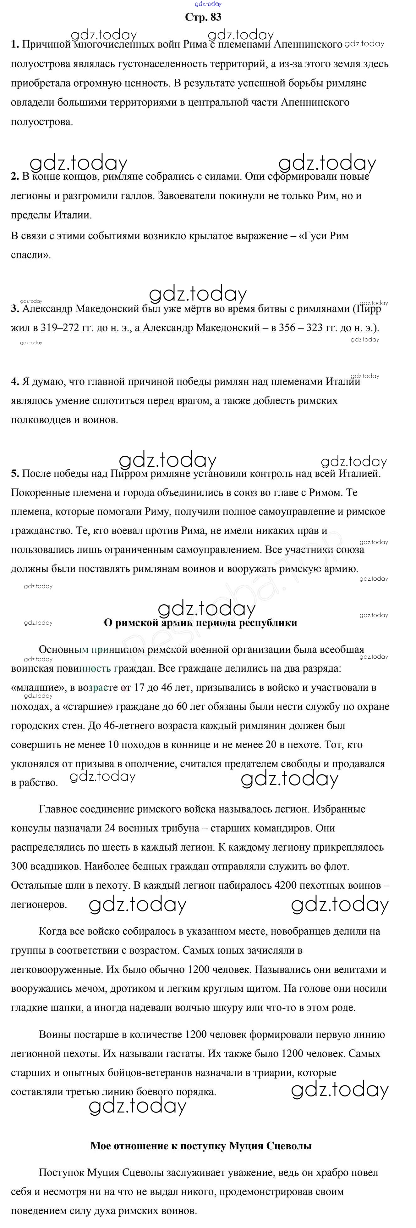 На страницах сайта gdz.today вы найдете учебный и вспомогательный материал, направленный на улучшения знаний школьной программы. ГДЗ - онлайн мир знаний Решение к части 2. Страницы  83 Учебнику по Истории для 5 класса Кошелев  Народная асвета  2014
