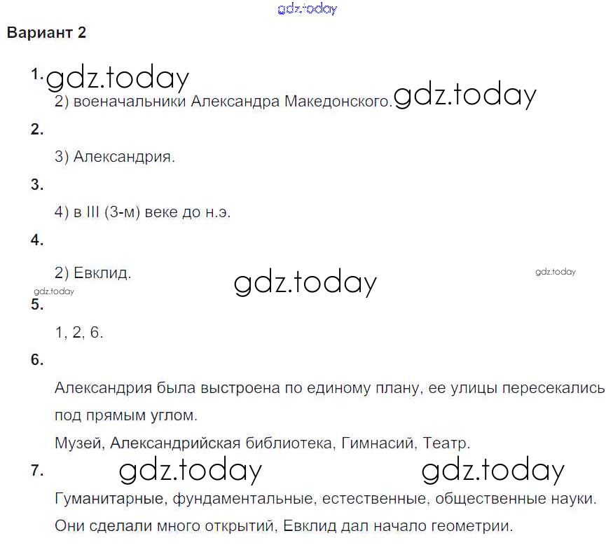 На страницах сайта gdz.today вы найдете учебный и вспомогательный материал, направленный на улучшения знаний школьной программы. ГДЗ - онлайн мир знаний Проверочная работа-2 Решение к главе 10. Македонские завоевания в IV (4-м) веке до н. э. Древний Рим Вариант №2 Проверочным и контрольным работам по Истории для 5 класса Крючкова  Просвещение  2015