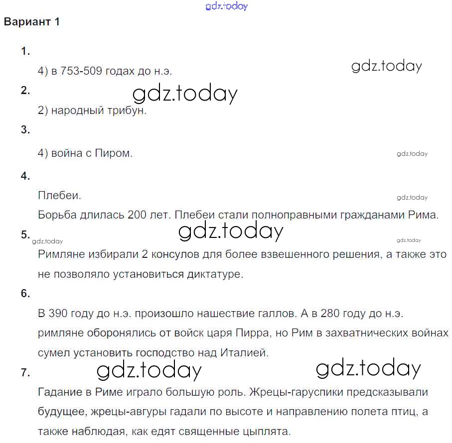 На страницах сайта gdz.today вы найдете учебный и вспомогательный материал, направленный на улучшения знаний школьной программы. ГДЗ - онлайн мир знаний Итоговая контрольная работа к главе Рим. От его возникновения до установления господства над Италией Решение к главе 11. Рим: от его возникновения до установления господства над Италией Вариант №1 Проверочным и контрольным работам по Истории для 5 класса Крючкова  Просвещение  2015
