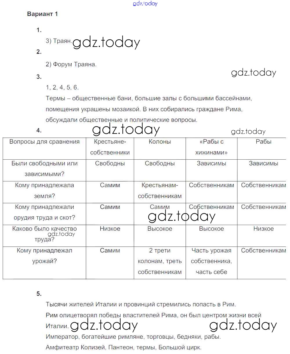 На страницах сайта gdz.today вы найдете учебный и вспомогательный материал, направленный на улучшения знаний школьной программы. ГДЗ - онлайн мир знаний Проверочная работа-2 Решение к главе 14. Римская империя в первые века нашей эры Вариант №1 Проверочным и контрольным работам по Истории для 5 класса Крючкова  Просвещение  2015