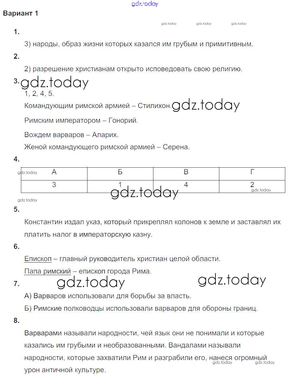 На страницах сайта gdz.today вы найдете учебный и вспомогательный материал, направленный на улучшения знаний школьной программы. ГДЗ - онлайн мир знаний Проверочная работа Решение к главе 15. Разгром Рима германцами и падение Западной Римской империи Вариант №1 Проверочным и контрольным работам по Истории для 5 класса Крючкова  Просвещение  2015