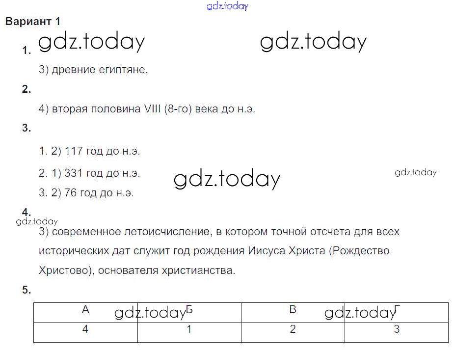 На страницах сайта gdz.today вы найдете учебный и вспомогательный материал, направленный на улучшения знаний школьной программы. ГДЗ - онлайн мир знаний Проверочная работа Решение к главе 3. Счёт лет в истории. Древний Восток Вариант №1 Проверочным и контрольным работам по Истории для 5 класса Крючкова  Просвещение  2015