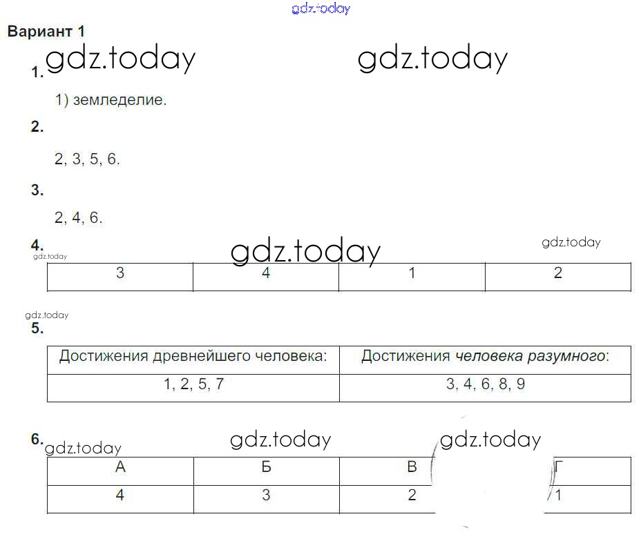На страницах сайта gdz.today вы найдете учебный и вспомогательный материал, направленный на улучшения знаний школьной программы. ГДЗ - онлайн мир знаний Итоговая контрольная работа по темам - Жизнь первобытных людей; Счёт лет в истории Решение к главе 3. Счёт лет в истории. Древний Восток Вариант №1 Проверочным и контрольным работам по Истории для 5 класса Крючкова  Просвещение  2015
