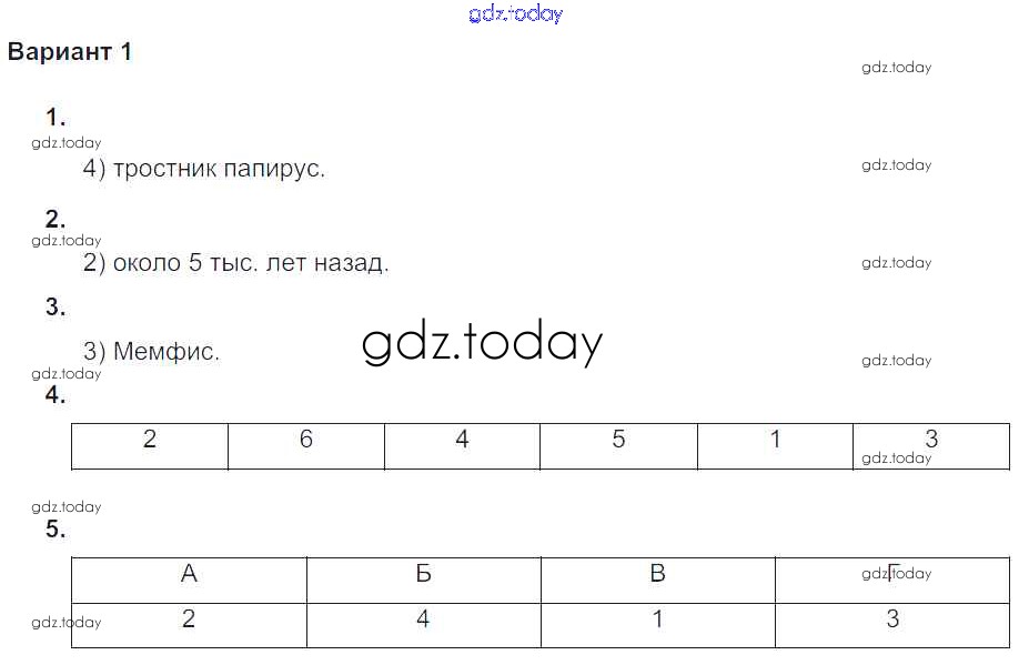 На страницах сайта gdz.today вы найдете учебный и вспомогательный материал, направленный на улучшения знаний школьной программы. ГДЗ - онлайн мир знаний Проверочная работа-1 Решение к главе 4. Древний Египет Вариант №1 Проверочным и контрольным работам по Истории для 5 класса Крючкова  Просвещение  2015
